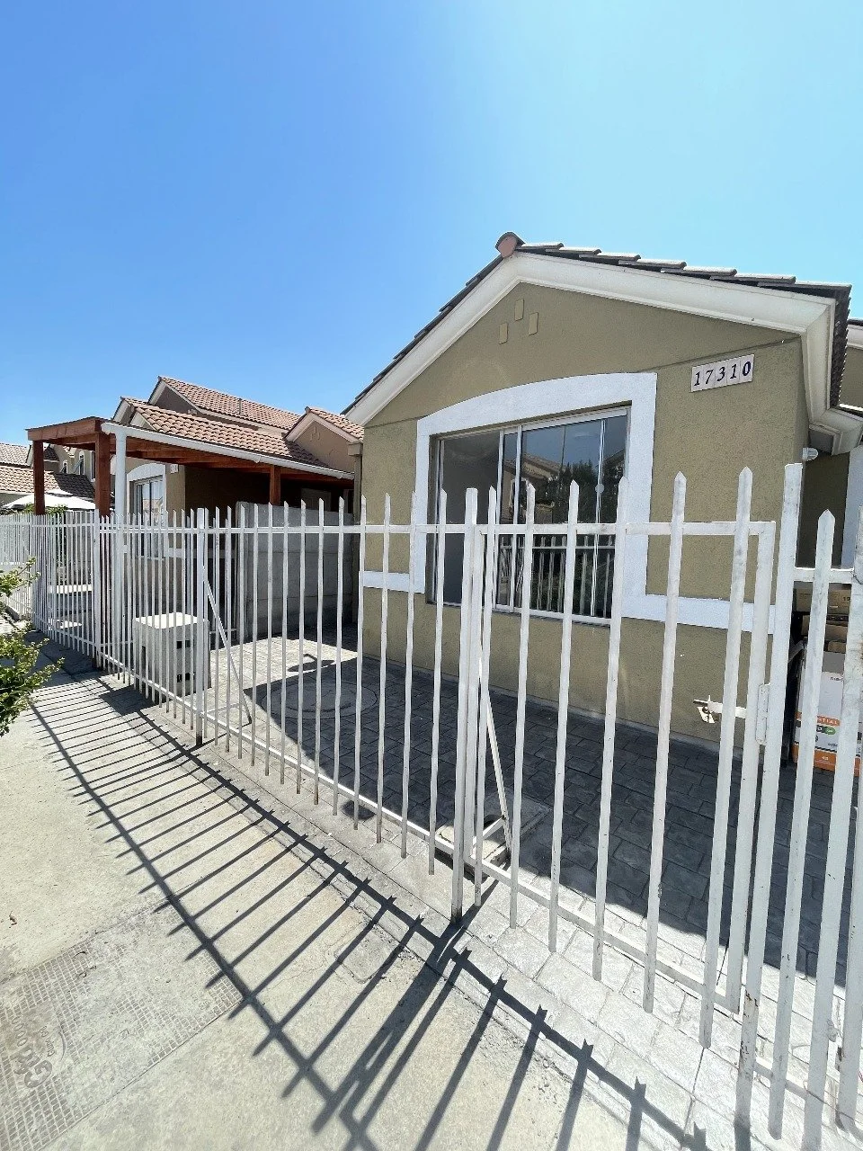 Casa de material solido de 1 piso, con 3 dormitorios, 1 baño, cocina amoblada y equipada, living, comedor, y un amplio patio trasero.